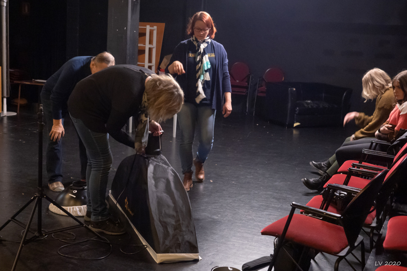 Tänään studionvuoron alussa Sanna opasti osallistujia studiokuvauksen saloihin ja välineisiin. Ensin pystytettiin standit l. jalustat, sitten varsinaiset valot, tausta ja valonmuokkaimet. Seuraavaksi Sanna näytti ideoita kuvaamiseen ja mallit asettautuivat kuvattaviksi. Sitten vielä pientä säätöä sekä mallien ohjausta ja ei muuta kuin kuvaamaan.